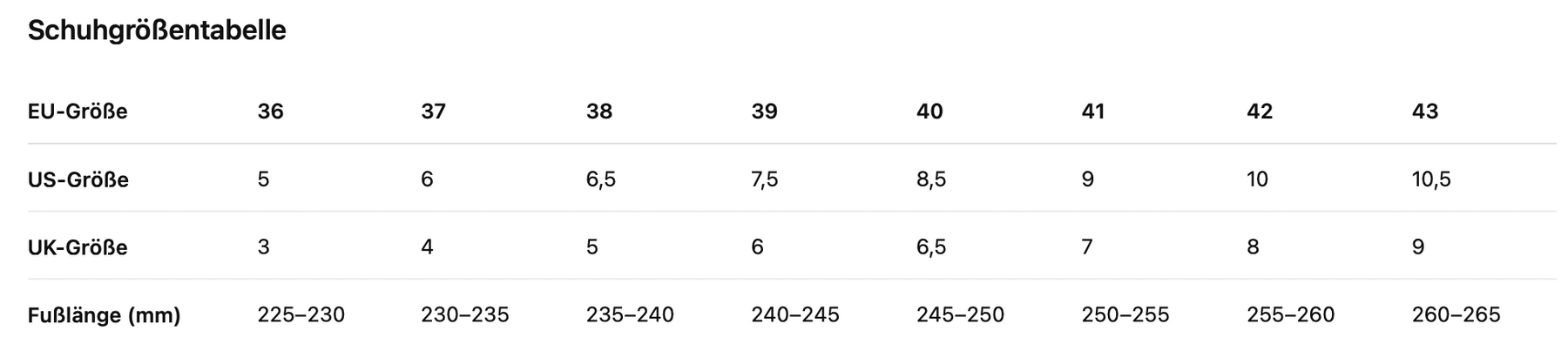 Bitte messen Sie Ihre Fußlänge von der Ferse bis zur längsten Zehe.