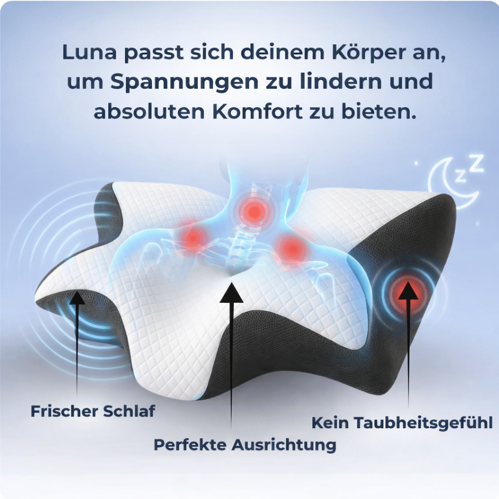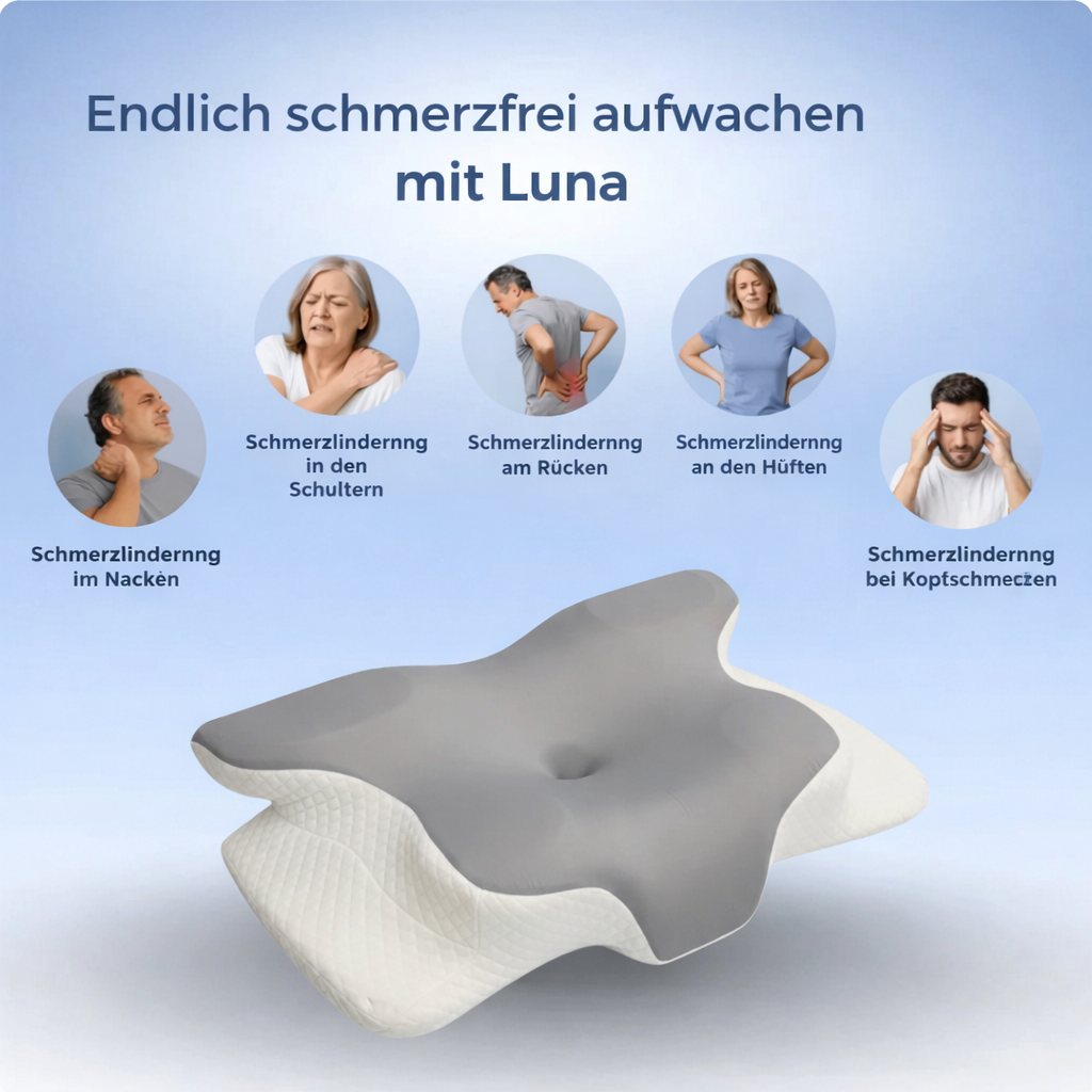 Wachst du oft mit einem steifen Nacken, ziehenden Schulterschmerzen oder einem Mangel an Energie auf? Die Ursache liegt oft nicht daran, wie lange du schläfst, sondern an dem, worin du schläfst. Lerne das Luna Ergonomisches Kissen kennen: die Revolution für deinen Schlaf.